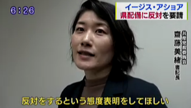 TBS系青森【イージス・アショア青森県の配備を認めないように要請】現在防衛省では青森県内の六か所を含む東北19か所で再調査していて共産党県委員会では県内への配備を認めないよう要請した。 共産党青森委員会 斉藤美緒書記長は…pic.twitter.com/HGnNg47WKj