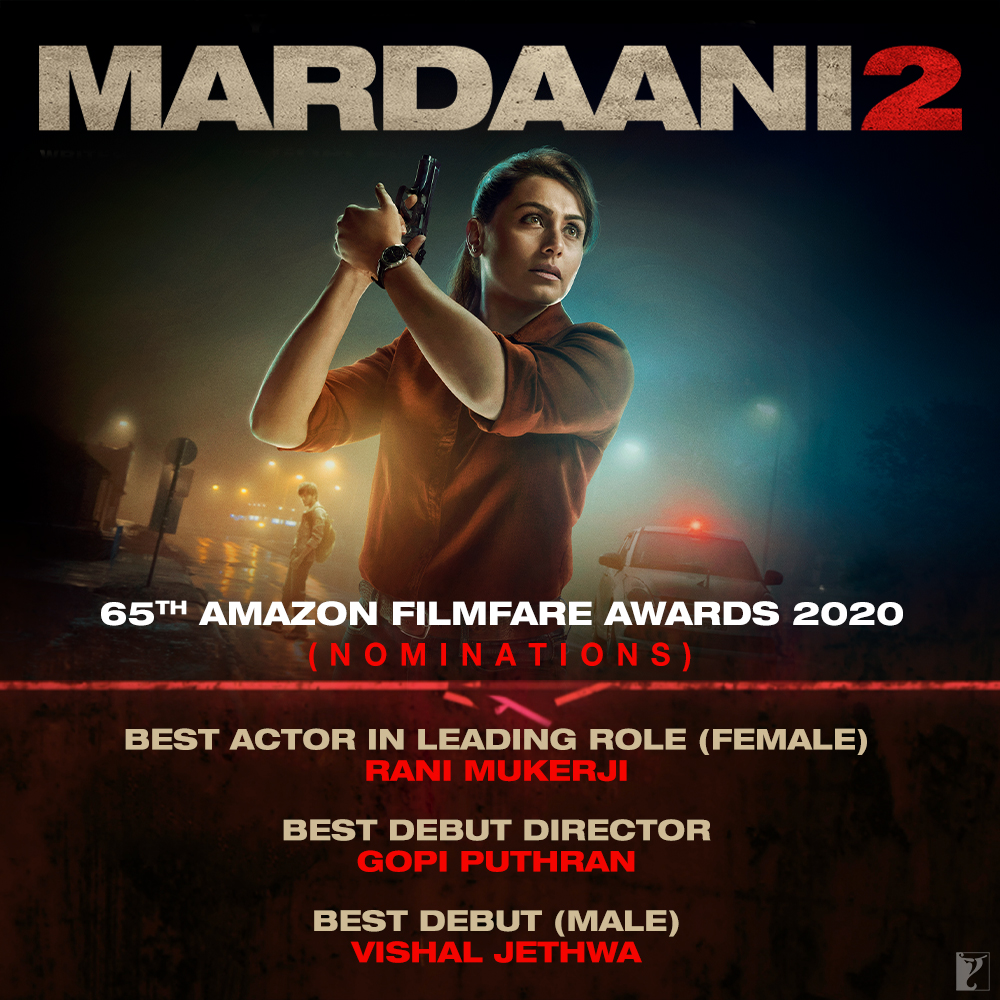 #Mardaani2 at the 65th#AmazonFilmfareAwards |@filmfare.#RaniMukerji |#GopiPuthran |#VishalJethwa |@mardaani2pic.twitter.com/QSas8oxKAC