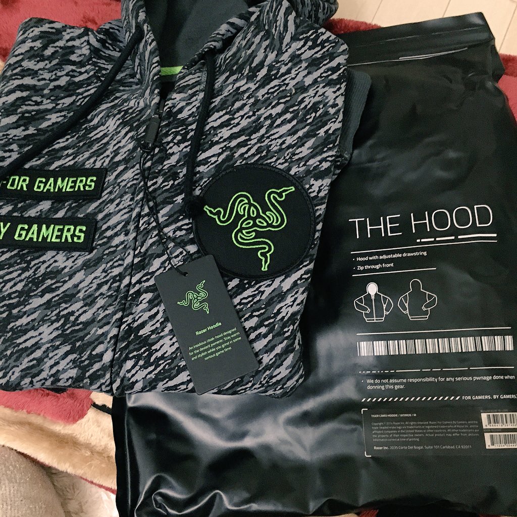 Razerからレディースサイズのパーカーが出ました!タイガーカモ柄を着てみたよ。今までメンズサイズをだぼっと着てたけどこれもスッキリして良い感じ。裏起毛でぬくぬく٩( 'ω' )و