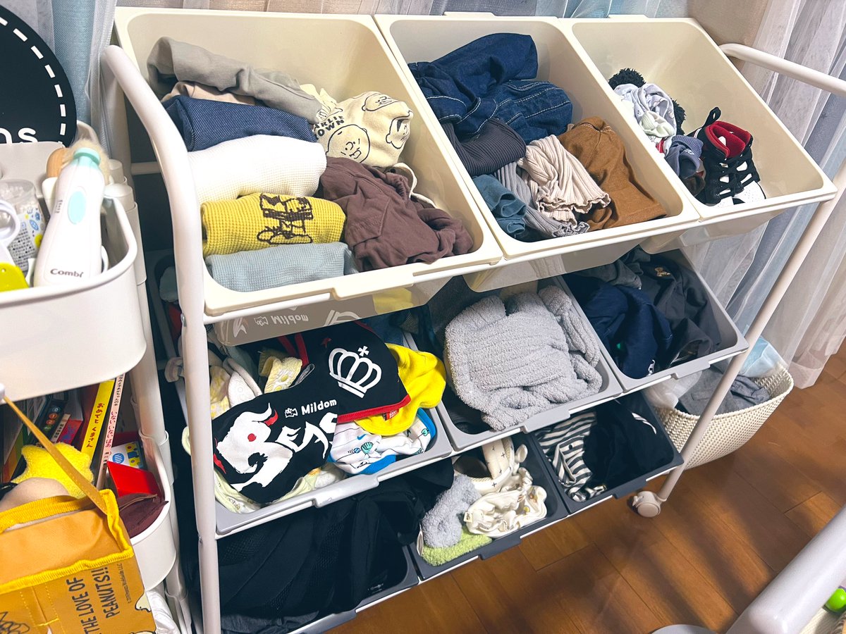 あと楽天でポチったラックが届いたので組み立てました。息子の服が散乱しがちだったので、洗濯したらとりあえずここにポイポイしていく方式に……。ちゃんと畳まなくても死なない!ヨシ!!pic.twitter.com/1zV8oFPCxA