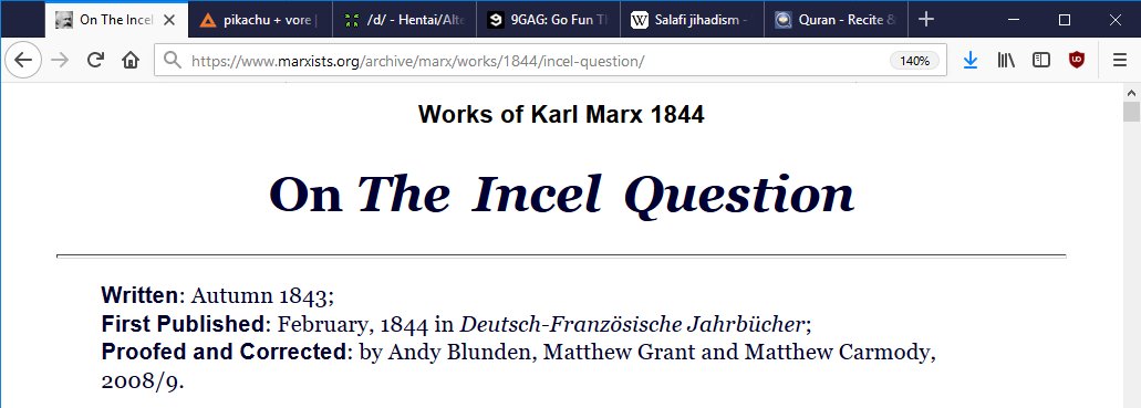 that “the emancipation of the incel from society is the emancipation of society from the incel” could not be truer