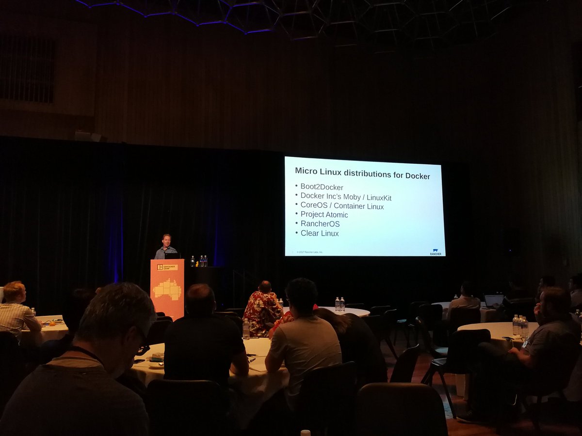 @SvenDowideit on my favourite micro distro#rancheros at@containercamp@Rancher_Labspic.twitter.com/6Ew1TO6ppr
