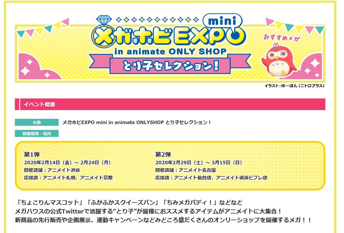 #メガホビEXPO mini】 in animate ONLYSHOP とり子セレクション! 2月14日〜