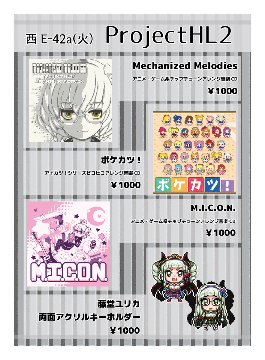 ここで宣伝!「硝子ドール」も収録された「アイカツ!」シリーズオンリーのアルバムや体が闘争を求めそうなアニメ・ゲーム音楽のピコピコアレンジ集がコミックマーケット97で頒布されちゃいます!詳しくはお品書きを見てね~!pic.twitter.com/NMrZIukbOG