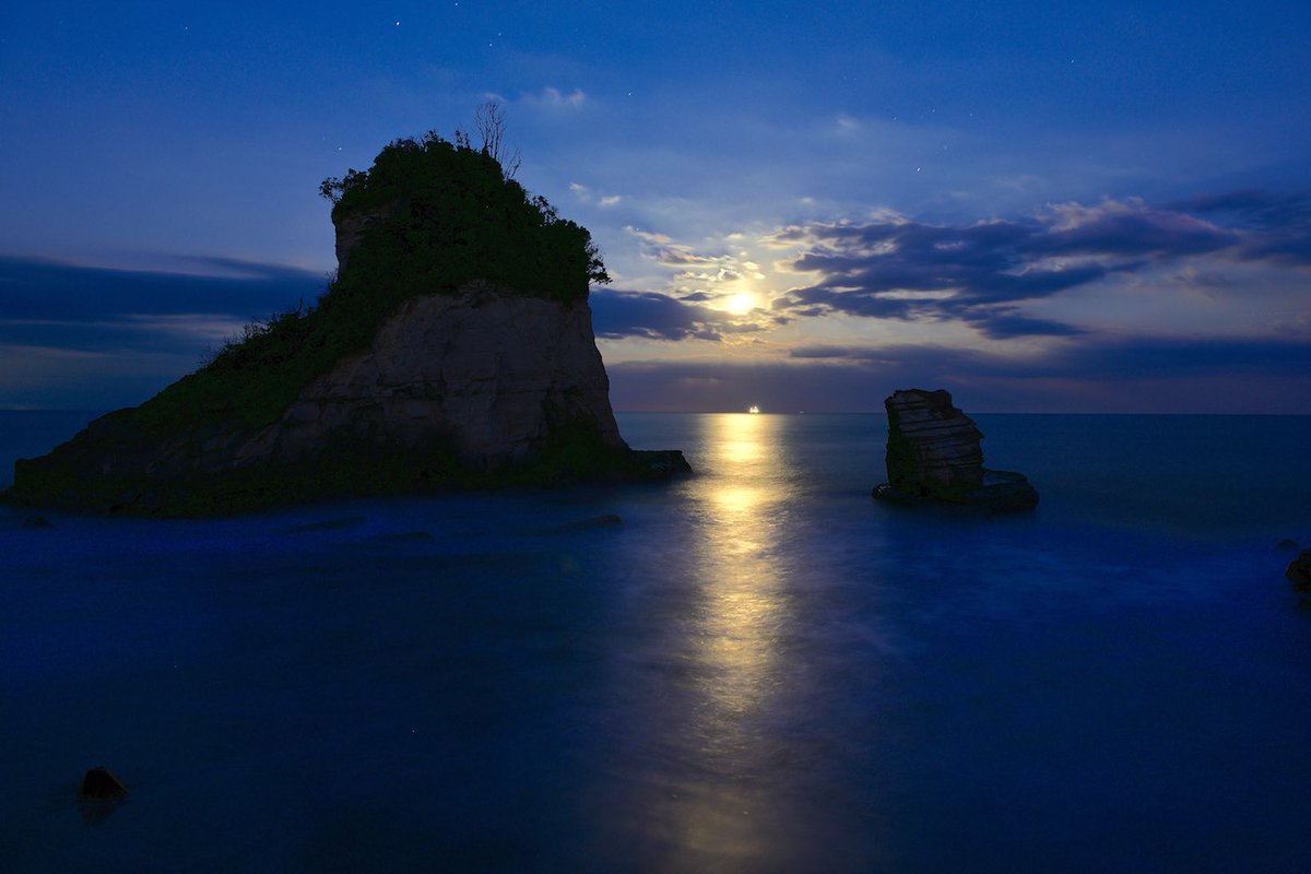 朝活なう 千葉県いすみ市のブルーアワー この小島は、少しずつ浸食されています。10年後には右手の島は無くなっているでしょう。今、写していかねばの心境です。pic.twitter.com/8Ue7WpCMO8