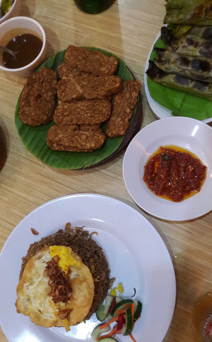 Tempeh, otak otak, nasi goreng.