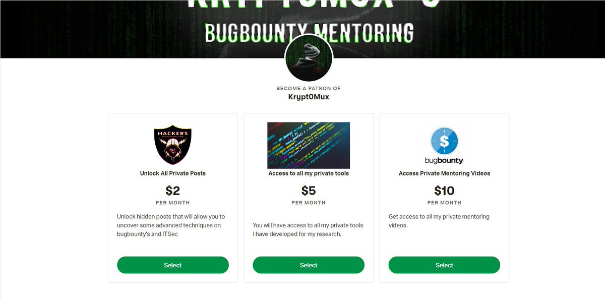 Just created a patreon page for my YouTube channel, support is always appreciated, these are the different tiers I am releasing videos on Advanced bugbounty hunting for all levels. - https://www.patreon.com/krypt0mux - https://hackingplayground.com/course/advanced-bug-bounty-hunting/ … Thanks so much