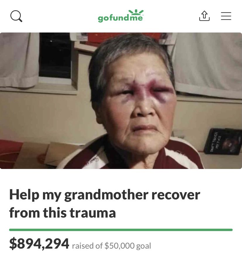 family of grandmother xiao zhen xie, the 75-year-old who fought back after an unprovoked attack in SF has raised almost $900K. following her wishes, they’ll be donating it all back to support AAPI community to fight racism. https://ca.gofundme.com/f/2b8zh292uo pic.twitter.com/njTkYKBRJg