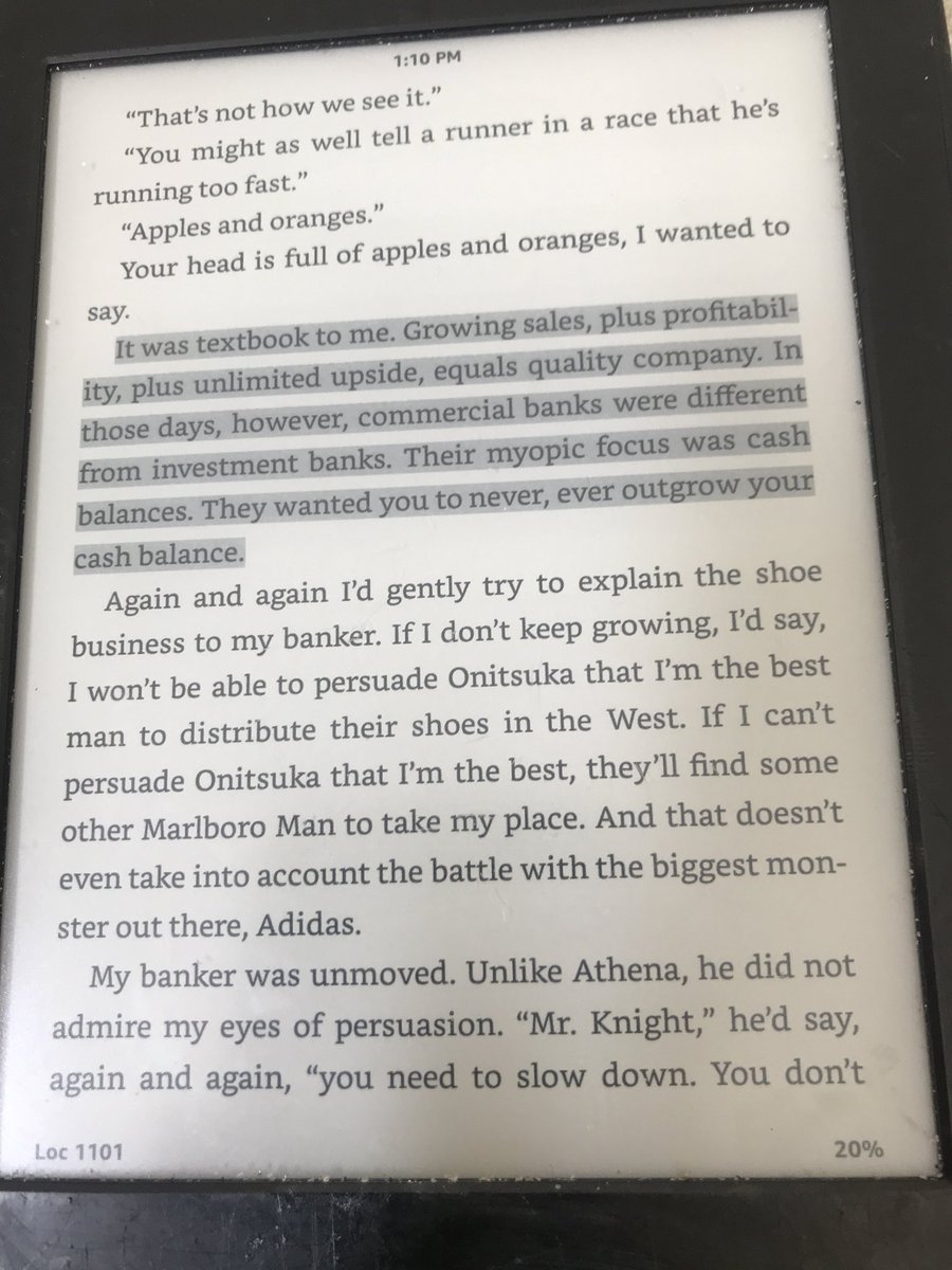This is fascinating in Phil Knight's autobiography where his banker complains that his company (pre-Nike) is growing too fast pic.twitter.com/j2QI7IqgqC