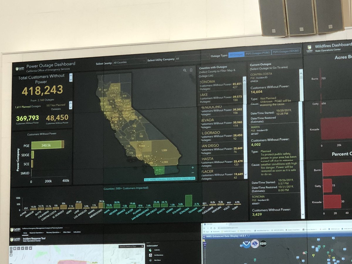 At lunch time in California, more than 400,000 customers are still without power. This big reminder is mounted over the emergency operations center. pic.twitter.com/Ysi9MCaeI1