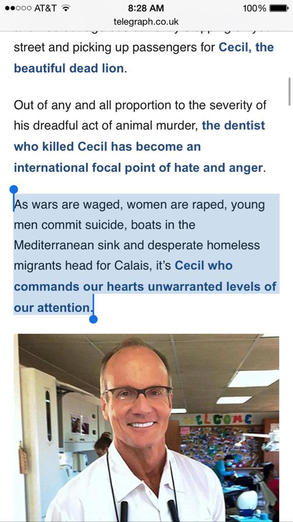 If there's one thing I've learned in life: always take the time to read the counterpoint. http://www.telegraph.co.uk/news/worldnews/northamerica/usa/11773264/Shut-up-about-Cecil-the-Lion-please.html …pic.twitter.com/EIVgpwf36a