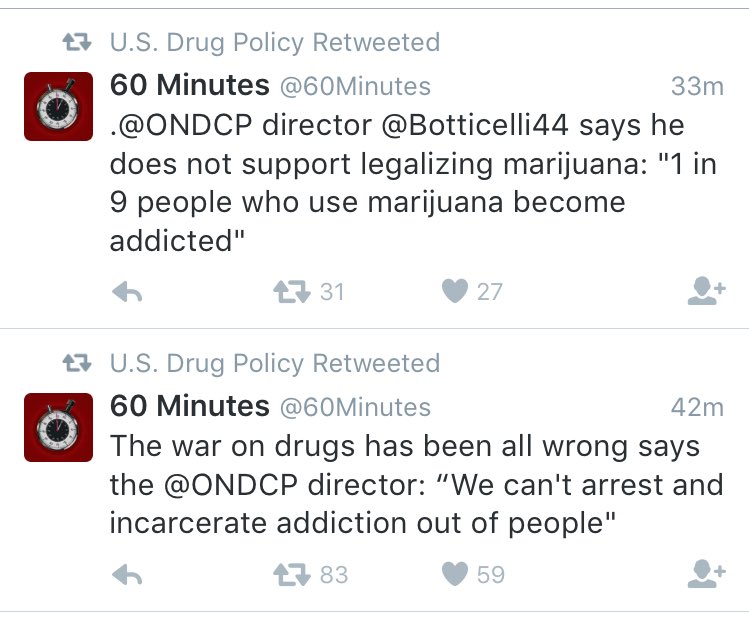 @zackkanter Don't legalize addictive drugs. Prison isn't an addiction center. These aren't compatible statements; he thinks they are true.Thanks. Twitter will use this to make your timeline better. UndoUndo