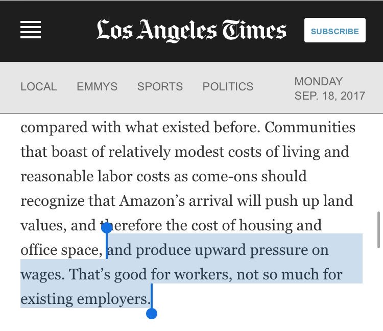 Wait, I thought we were trying to increase wages. Hard to keep up with the agenda these days. http://www.latimes.com/business/hiltzik/la-fi-hiltzik-amazon-hq-20170911-story.html …pic.twitter.com/8qJ2AB9YVs