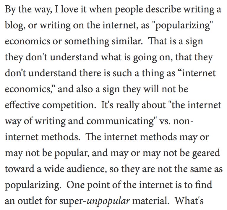 "That is a sign they don't understand what is going on, that they don’t understand there is such a thing as 'internet economics,' and also a sign they will not be effective competition." https://www.mercatus.org/commentary/my-personal-moonshot … @tylercowenpic.twitter.com/svvcvQvHAu