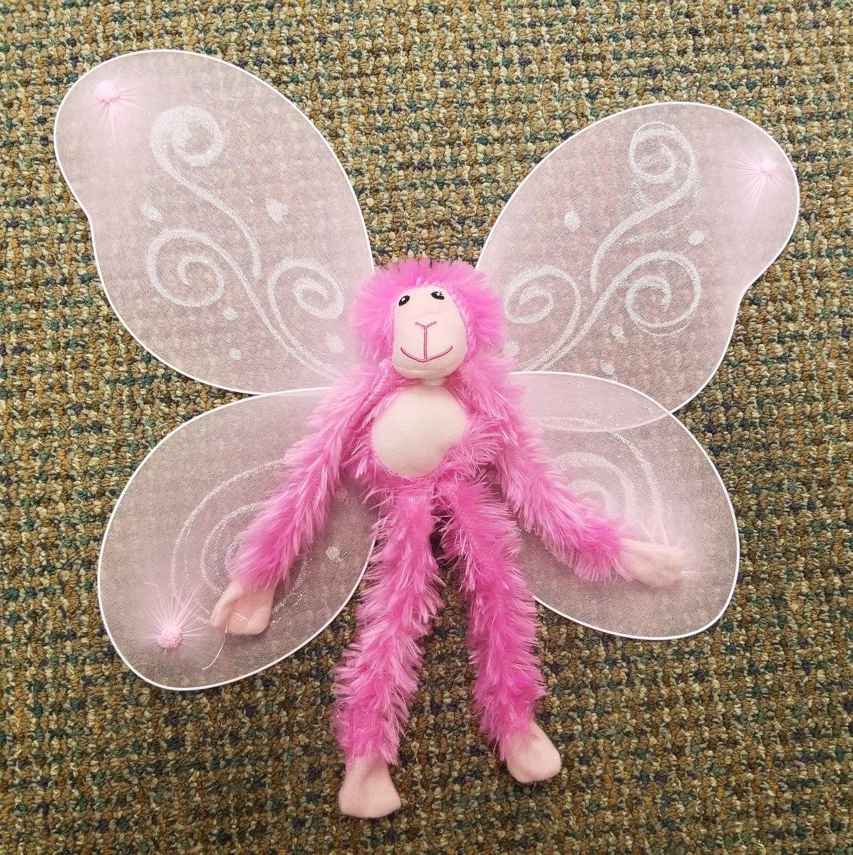 A co-worker handed me these and said "it's your job to put the wings on the monkey, go". We are decorating the cube of someone on vacation in pink pretty pretty princess stuff. Looks kind of like