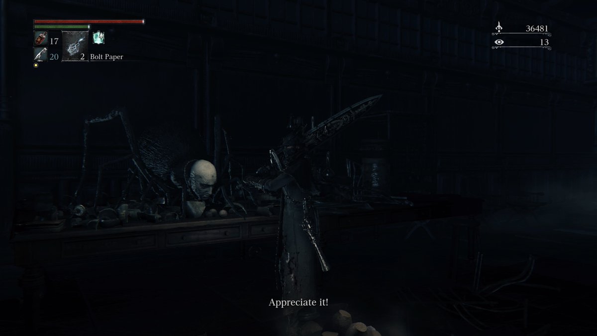 My urge to play Bloodborne turned into a major ordeal. A million updates, my cloud save file not working on my Pro, being the wrong save file anyway, transferring data from the old PS4, re-updating Bloodborne... but there she is, my lovely hunter. :)