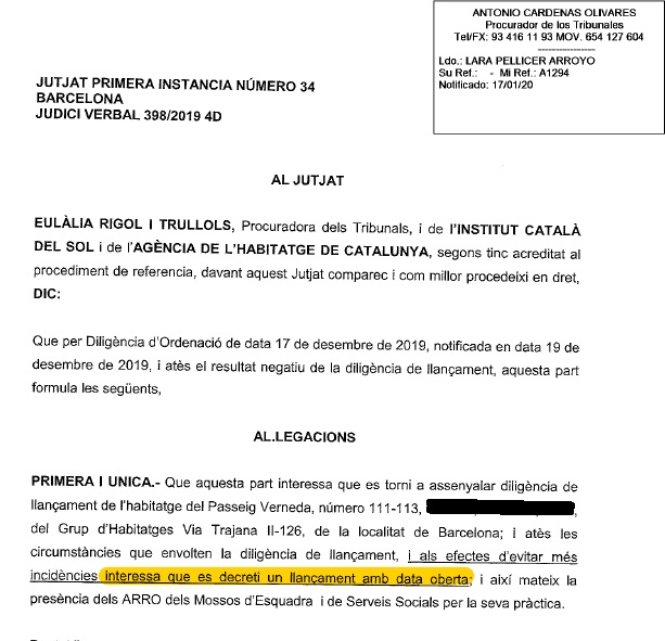 @gencat, a instàncies de la procuradora Eulàlia Rigol i Trullols, va demanar al jutjat de Primera Instància número 4 que el desnonament de la Débora i les seves dues filles de 3 i 6 anys fos en DATA OBERTA.#LaGeneDesnona#BenvingutsALaTrajanapic.twitter.com/OlXKLcP3iq