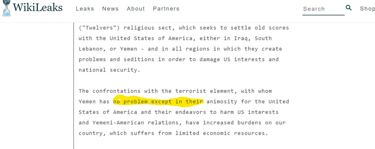 بحسب اعتراف لعلي عبدالله صالح ورد في رسالة منه إلى بوش كشفت عنها ويكليكس كان السبب الوحيد للحرب على صعدة هي أن أنصار الله يعادون أمريكا.. يقول صالح: إنه لا مشكلة مع الحوثيين إلا في عداءهم للولايات المتحدةpic.twitter.com/NVnT7TkwKe