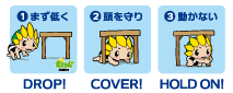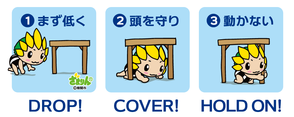 どろっぷ! かばー! ほーるどおーん!だって(`・ω・´)キリッ 地震はいつ起こるかわからないから、避難場所とかいろいろ確認しとくだよ☆pic.twitter.com/zownUbCdTx