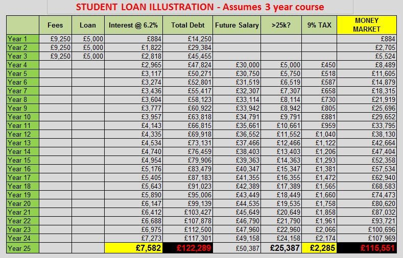 Great illustration, it's important to note that nothing is stopping the Government raising the 25k bracket and the 6.2% interest yet further. We are condemned to 30 years of extra payments.