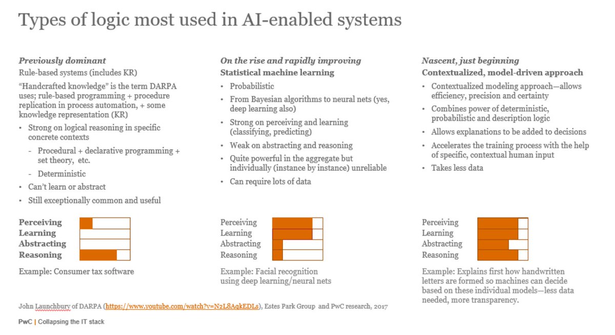 #symbolicAI (e.g. expert systems) to#connectionistAI (e.g. neural nets), to#hybridAI (combining probabilistic, descriptive and symbolic logic to get explainability; needs less data)pic.twitter.com/yNLf6PoWnD