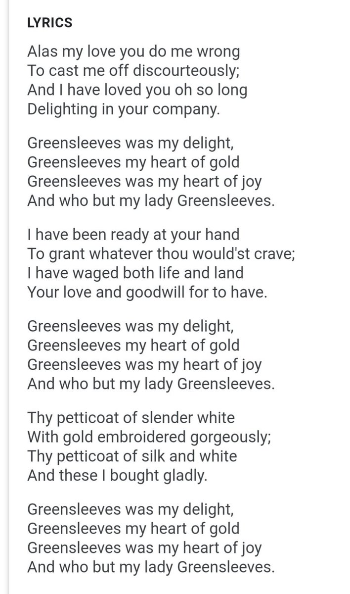I just learned greensleeves' original lyrics is abt an incel and I feel so betrayed