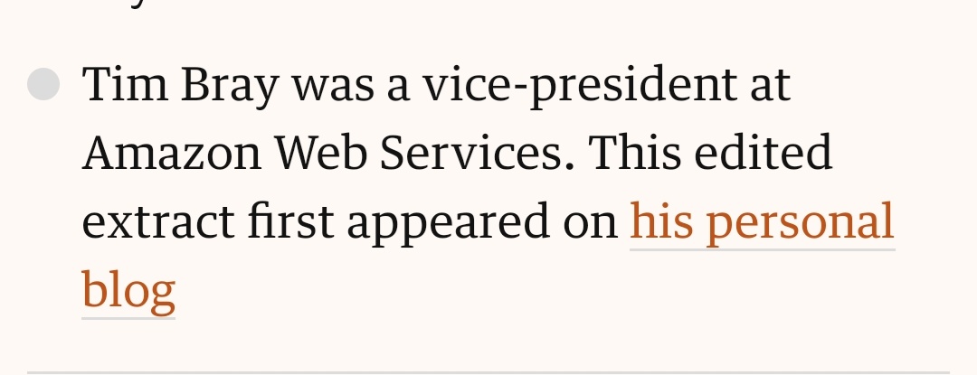 If you want more evidence that Journalists are the reason Journalism is dying then @guardian took @timbray’s WHOLE blog post about leaving Amazon and just...published it whole like he worked there and wrote it for them.
