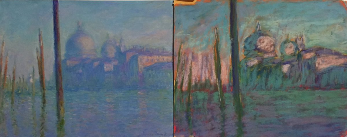 Have to abandon this pastel Monet copy and try again. The paper is too saturated to work on more.pic.twitter.com/1KADYv3xHQ