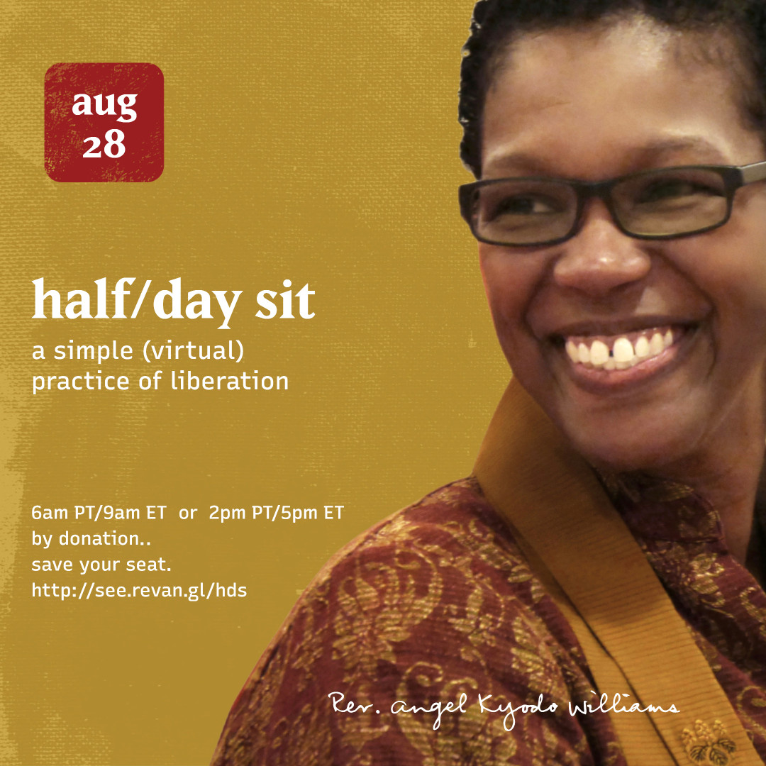 Sit with Rev. angel Kyodo williams and a few hundred of her friends. virtually. in collective. in solidarity. in trust. for love. • come for all or some. all welcome. This 𝗔𝘂𝗴𝘂𝘀𝘁 𝟮𝟴𝘁𝗵 𝗦𝗮𝘁𝘂𝗿𝗱𝗮𝘆. SAVE your seat! https://rfr.bz/t376ook pic.twitter.com/2q4sZ9gJrs