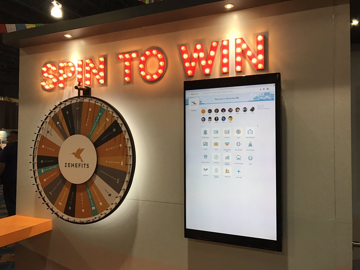 @Zenefits team's thrilled to be at#SNH17. If you're here, stop by to spin the wheel for a chance to win an#AppleWatch & other prizes!pic.twitter.com/s3PHzUHq6m