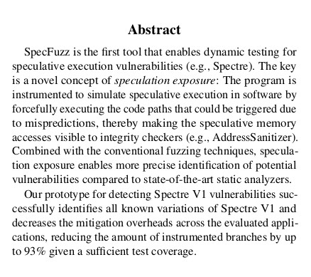 Academic Twitter is for bragging, right? Well, our paper, "SpecFuzz: Bringing Spectre-type vulnerabilities to the surface" has been accepted to