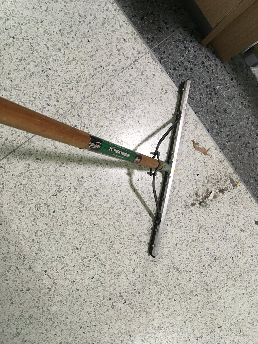 TFW when you pack every last broom and end up trying to clean the terminal with a squeegee! Terminal is now empty !!! except for two big loads headed to fly tomorrow morning to still hard-to-reach areas in Columbus county. Also the bullhorn has been hooked up to music, maybe.pic.twitter.com/uzD9HaOR7x