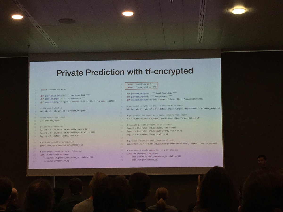 Because I keep having a typo in the hashtag, reposting. Here's a comparison between regular TensorFlow code and tf-encrypted—with privacy-preserving python lib addition. I'm constantly surprised how relatively small these research programs are given their importance.