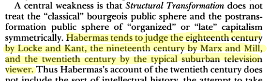 Well I was mostly commenting on the tendency to compare average() to max()—very common fallacy that people use to justify nostalgia. Habermas happens to do it, too!
