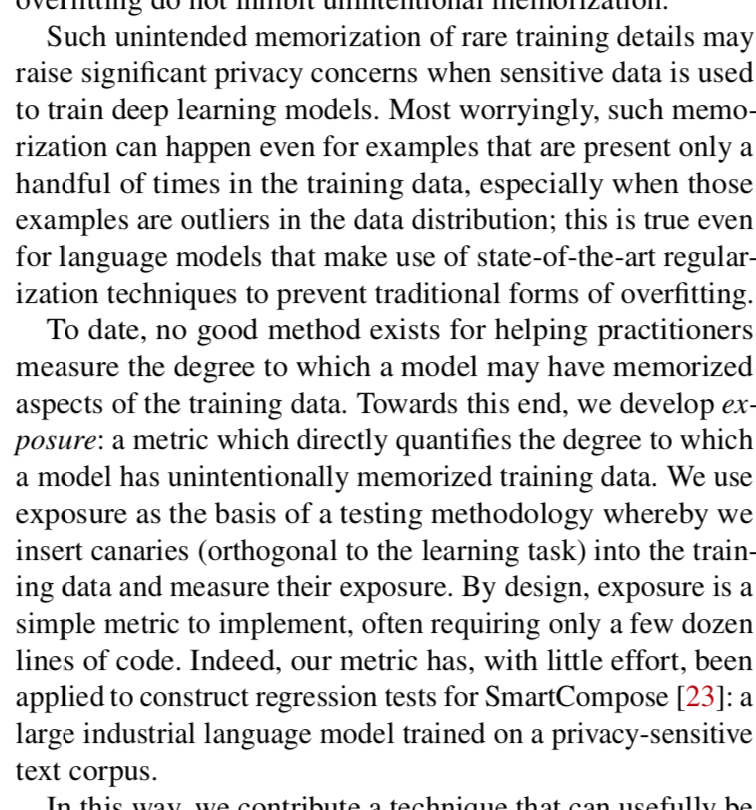 here's some more recent work looking at ML on text in particular: https://arxiv.org/abs/1802.08232 lots to be concerned about re: power dynamics in ML regardless. but it also seems good to push for privacy audits, datasheets, model cards, etc as part of being called "state-of-the-art"pic.twitter.com/SwTStiLKEY