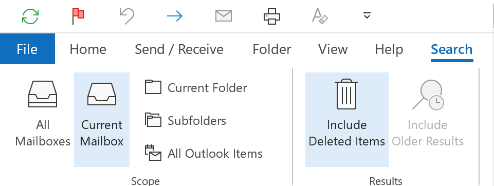 check the ribbon; don't know if this is just in the Insiders release (I'm on fast ring) but there's a big button to toggle searching deleted items on and offpic.twitter.com/RXDhFQHBAc