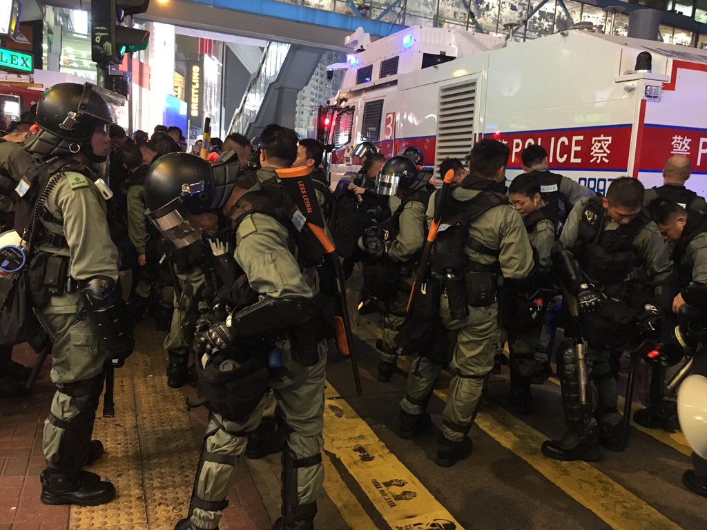 Not what a political solution for Hong Kong looks like. The government response seems to be tasking the police with clearing protesters, but the protesters are tenacious and feel legitimate. Police just came and pushed around the press, and then left. No tactical rhyme or reason.pic.twitter.com/1ZhKlface4