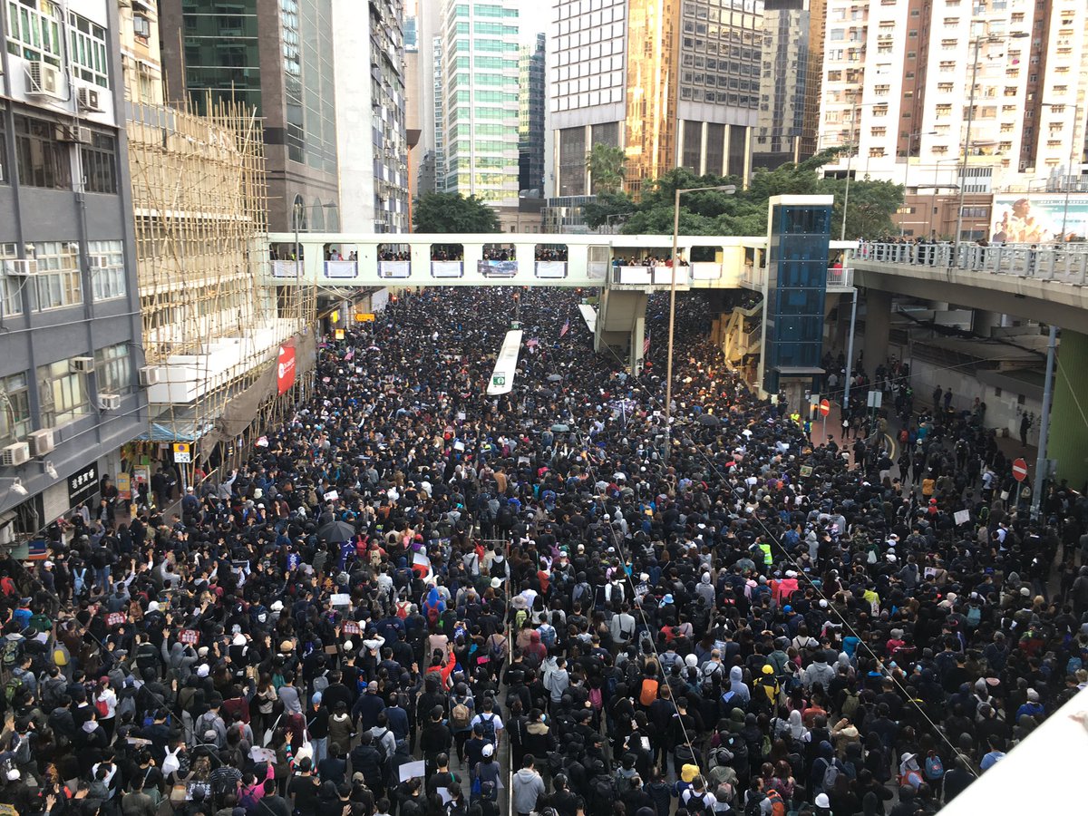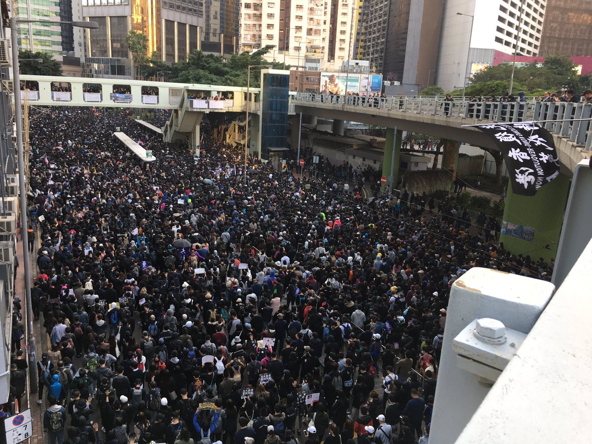 Today’s march in #HongKong is the first legal one in about 2 months, since 3 protesters were shot, universities were besieged and the HKHRDA was passed. And the streets are still so choked at 5pm that they’re pushing BACK towards Victoria Park: “Five demands, not one less”pic.twitter.com/7q0fUR0A6p