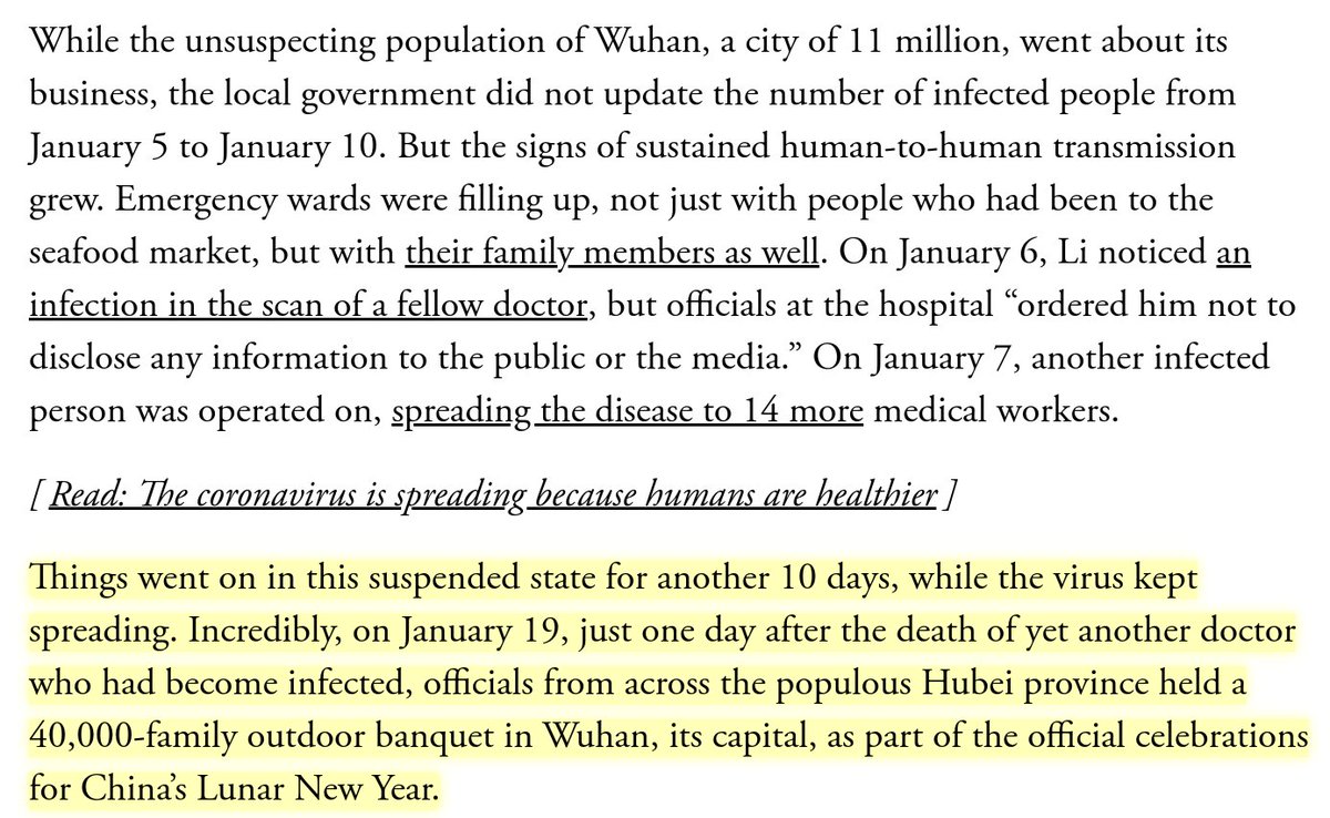 Reminder that Chinese authorities knew there was human-to-human transmission in December when there were very few cases. They could have spared the whole world. Instead they punished whistleblower doctors & organized mass outdoor events till late January. https://www.theatlantic.com/technology/archive/2020/02/coronavirus-and-blindness-authoritarianism/606922/ …pic.twitter.com/fQV7rZTORN