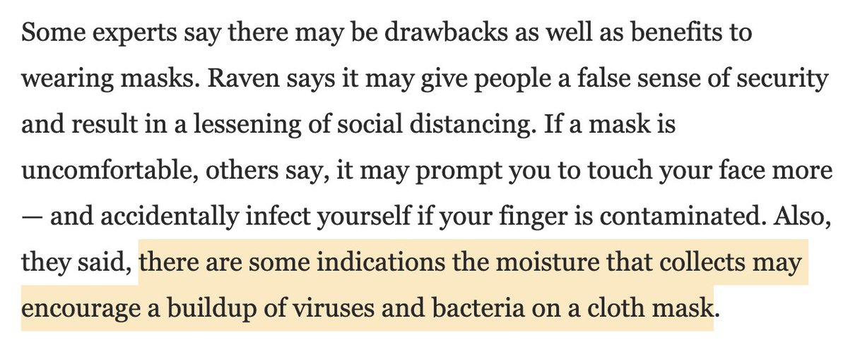 Btw I've seen ZERO evidence that incorrect mask wearing *increases* risks to regular people compared to NO MASKS. The One study that the faux experts go on and on about looked at cloth masks compared TO surgical masks IN hospitals. Uh, duh. Surgical mask > cloth mask for a nurse.
