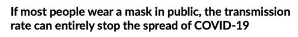 A public good like masks for all cannot be measured as an individual benefit. So we did some population level-modeling. If we can get 80+% of people to wear masks, we could help push R below 1. All models have limits (next tweet) but it's a strong argument! (Blue is R below 1).pic.twitter.com/4qqWj85Knw