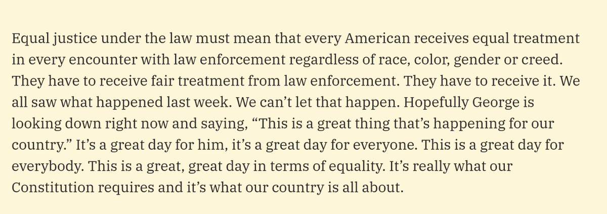 So your interpretation is that Trump meant something like “we gave equal justice under the law, and George Floyd is silmiling down on us for giving equal justice”? Just want to be clear in what your interpretation is.