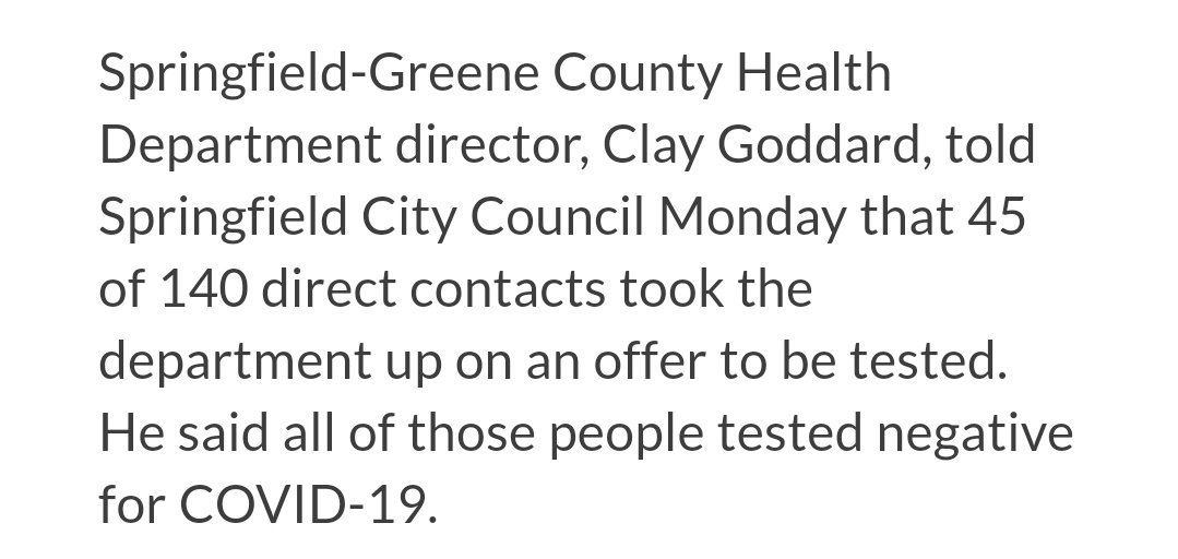 So we know that 95 people declined the offer to be tested. re: Ozarks. I've not read about any contact tracing efforts there, though we know someone there had tested positive. I don't have Missouri county level data available at the moment, but, more generally:pic.twitter.com/5ceCqFcbye