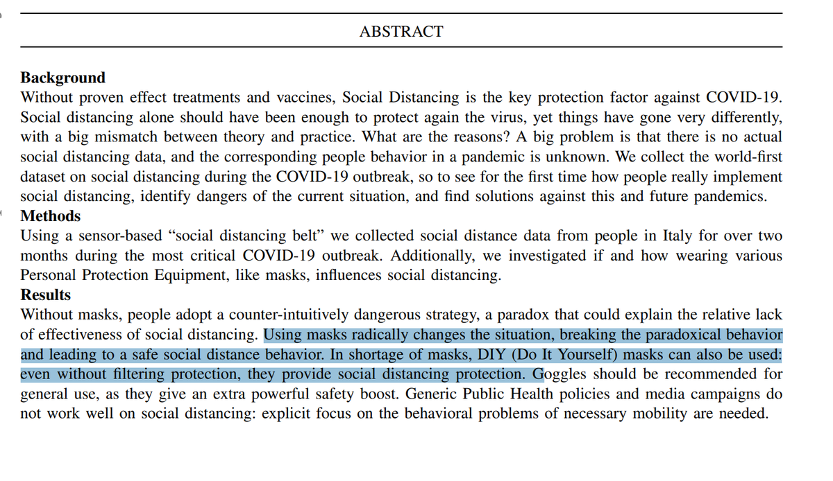Look at this new preprint. They find, quite unsurprisingly, that masks *increase* distancing. I've been arguing this for months based on social science evidence! This is what you'd expect, not false sense of security nonsense. But all this was disregarded. https://arxiv.org/pdf/2005.12446.pdf …pic.twitter.com/k7f0ZiQQ4s