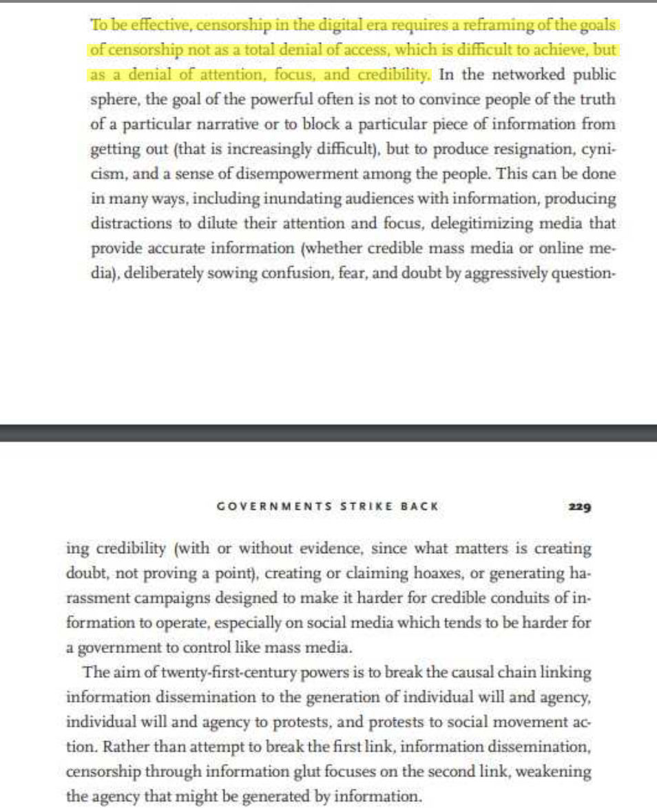 In the networked era, it's no longer possible to hide key information, but it absolutely is possible to break the link between information and action and empowerment. Been writing this for years; that's what Wikileaks etc. did, for example, in 2016: confuse and increase mistrust.