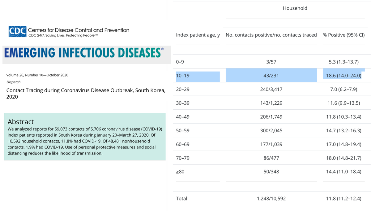 This remarkable South Korea contact tracing new @CDCgov report has attracted much attention d/t high transmission among kids age 10-19. But there's something very odd here See excellent analytical threads @apsmunro https://twitter.com/apsmunro/status/1284794506265722881 … @CT_Bergstrom https://twitter.com/CT_Bergstrom/status/1284644413470203909 …pic.twitter.com/n7Ob7UQG4u