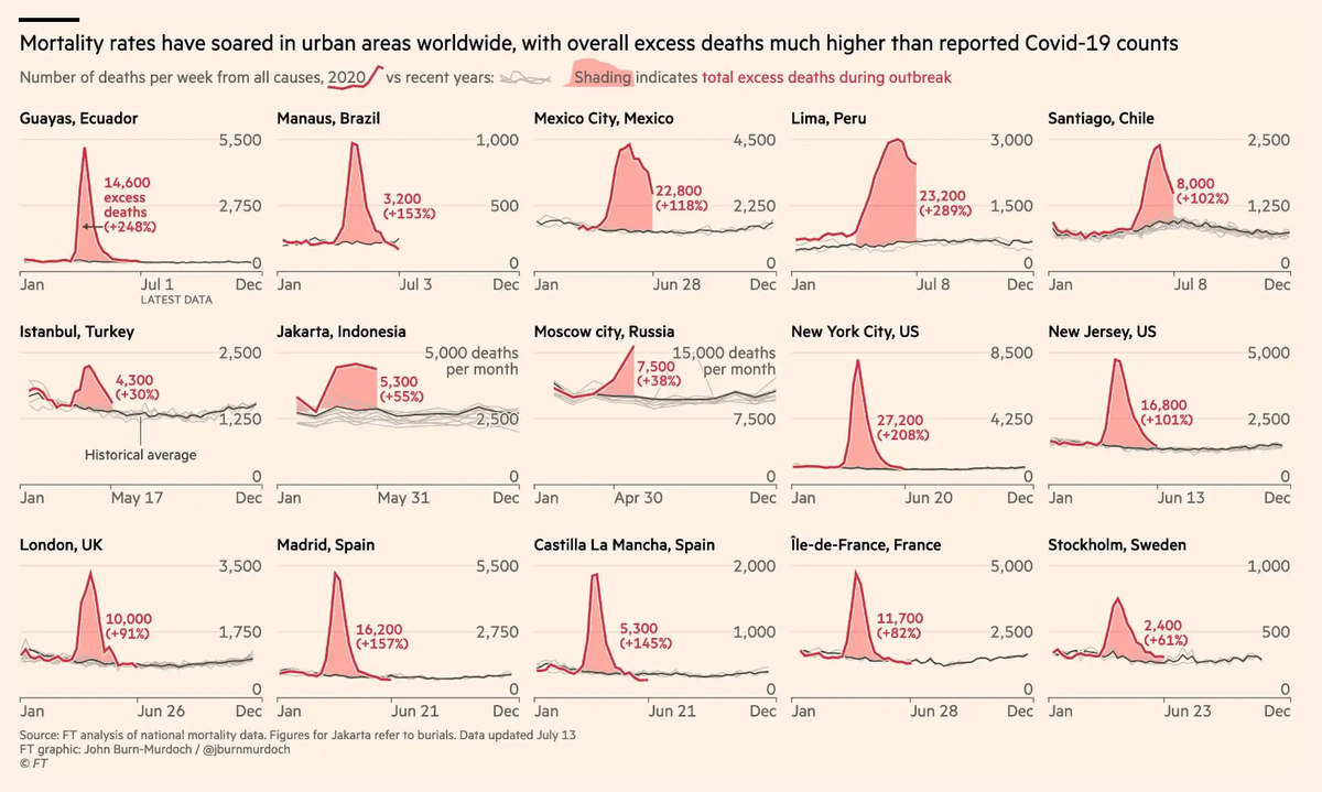 For context, there was 90% increase in excess mortality in London, with 15-20% seroprevalence (https://www.gov.uk/government/publications/national-covid-19-surveillance-reports/sero-surveillance-of-covid-19 …). So plausible based on pattern in Lima (290% increase in excess mortality) that seroprevalence could be high in Peru.pic.twitter.com/LKzLgLP1i7