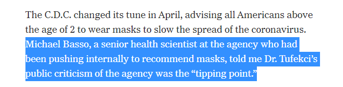 !!! I had assumed the CDC planned to ease the US public into measures like masks. I was cautious about (former) programmers being intellectually arrogant. But apparently @zeynep personally, & the NYT, helped save countless lives https://www.nytimes.com/2020/08/23/business/media/how-zeynep-tufekci-keeps-getting-the-big-things-right.html …pic.twitter.com/BRDtnNmGU5