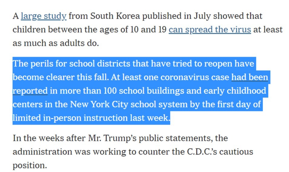 Getting more bizarre. The NYT story got yet another silent update (meanwhile, the incorrect version is front page in the print one) but now makes even less sense. The South Korea study was misreported from day one, objected to immediately by domain experts, and never showed this.pic.twitter.com/vObns1brt7