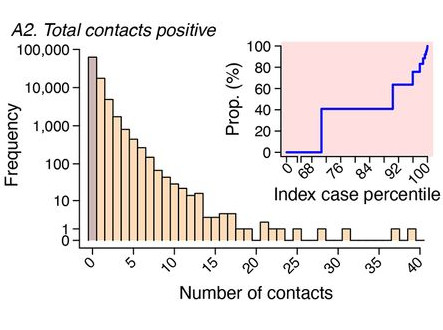 I'm not questioning the over-dispersion at all, and that most people transmit to no one. Notice the log scale in this plot in this paper (from Figure 2), showing the counts of people who had 0 infected contacts, 1 infected contact, and so on.pic.twitter.com/HQ3zbQ6rIO